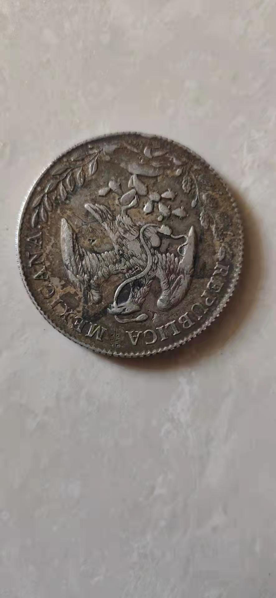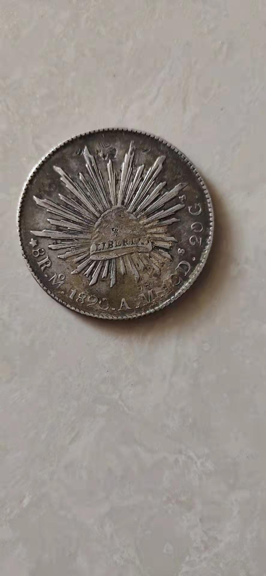 英文翻译:Mexican silver, also known as "ink silver" or "eagle ocean", later misrepresented as "British ocean". It refers to the new coinage used after the independence of Mexico in 1821. It was minted from 1823. There are generally two types of eagle Ocean, the lace eagle Ocean before 1897 and the straight edge Eagle Ocean after 1898. During the late Qing Dynasty and the Republic of China, the foreign silver dollar was imported into China from Mexico. According to the survey of the branch in the second year of Xuantong (1910) of the Qing Dynasty, there were about 1.1 billion foreign silver dollars in circulation in China at that time, and one third of them were Mexican eagles.
