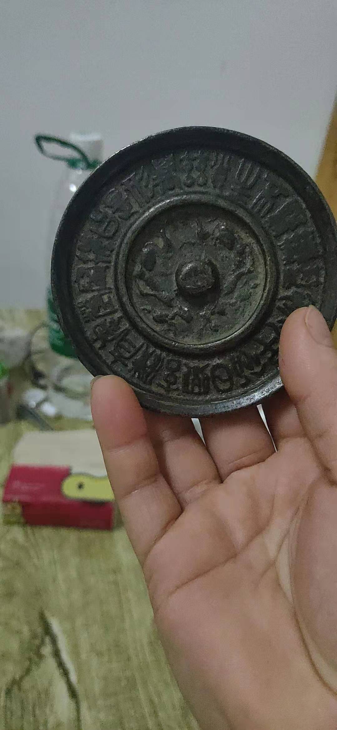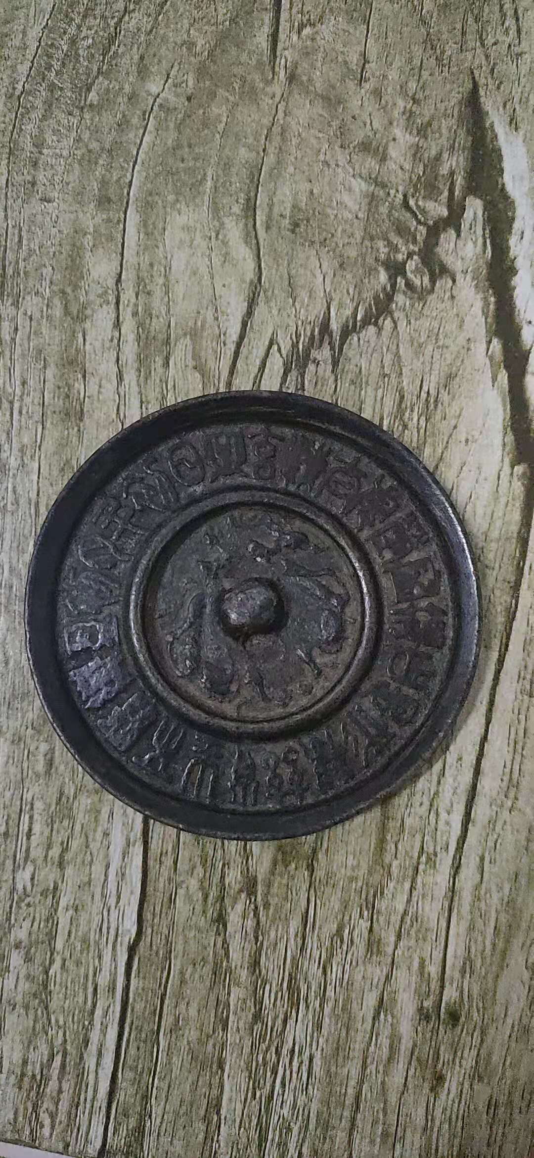 This bronze mirror has obvious black paint old wrapped slurry, positive rotting, belong to the collection of the door to me, the real, no doubt, in pay attention to the inscriptions, bronze collection with inscriptions of bronze price several times higher, this not only with inscriptions, bronze mirror to determine s, but has a beautiful black paint old wrapped slurry, is more valuable is that it is bronze mirror target language in the mirror, meaning auspicious, very lovable, This mirror looks perfect, historical research value is very high, the collection potential is huge, it is recommended to collect, handed down.